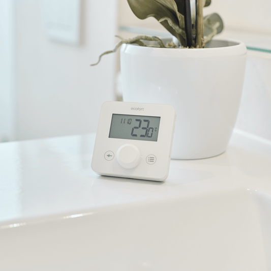 Tipp: Der ecoheat Sensus Thermostat ist separat erhältlich und ermöglicht die Steuerung aller Aura Heizungen in einem Raum. Pro Raum wird ein Thermostat benötigt.